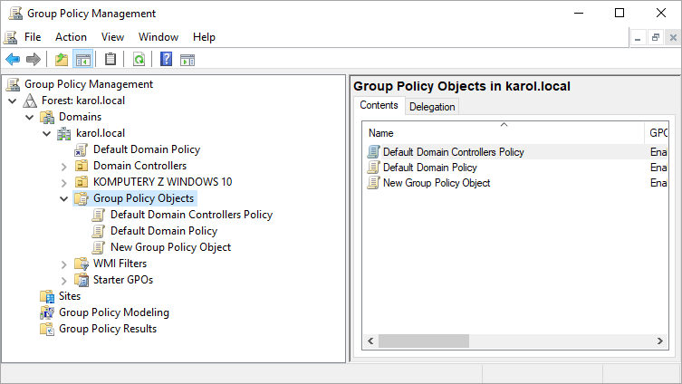 2. Go to the Group Policy Objects -to do this, in the domain structure window, expand: Forest > Domains > selected domain or organizational unit.