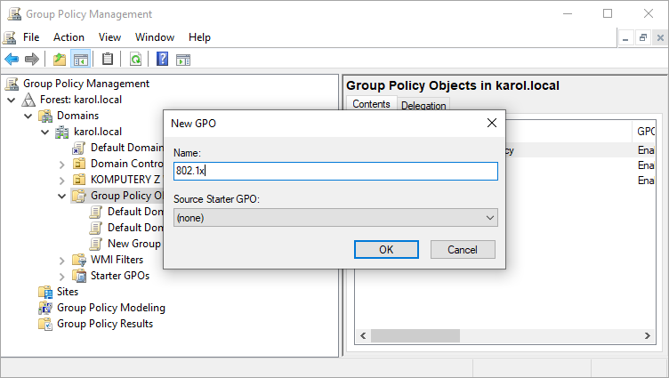 4. In the window that appears enter a name for your new GPO and confirm with OK.