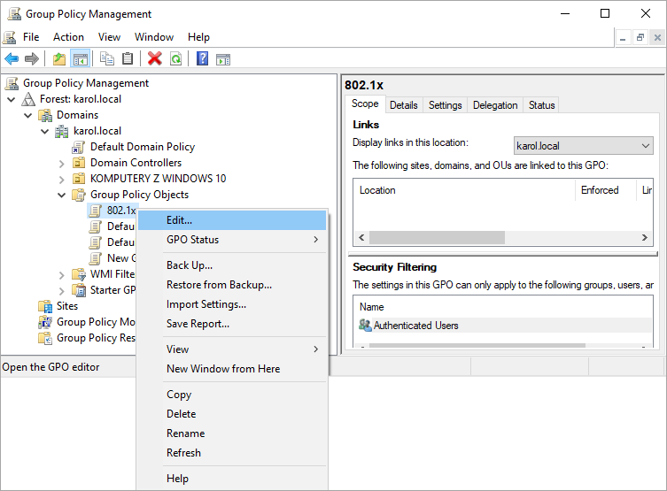5. From the context menu, select Edit… for the new GPO.